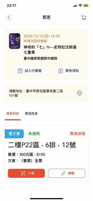 位置:二樓P22區-6排-12號