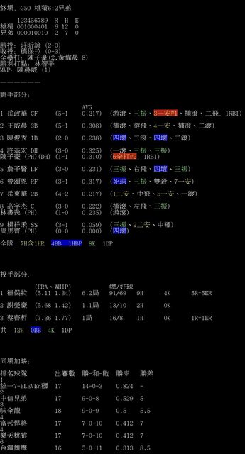 標題[情報] G50 桃猿6:2兄弟 全場數據box