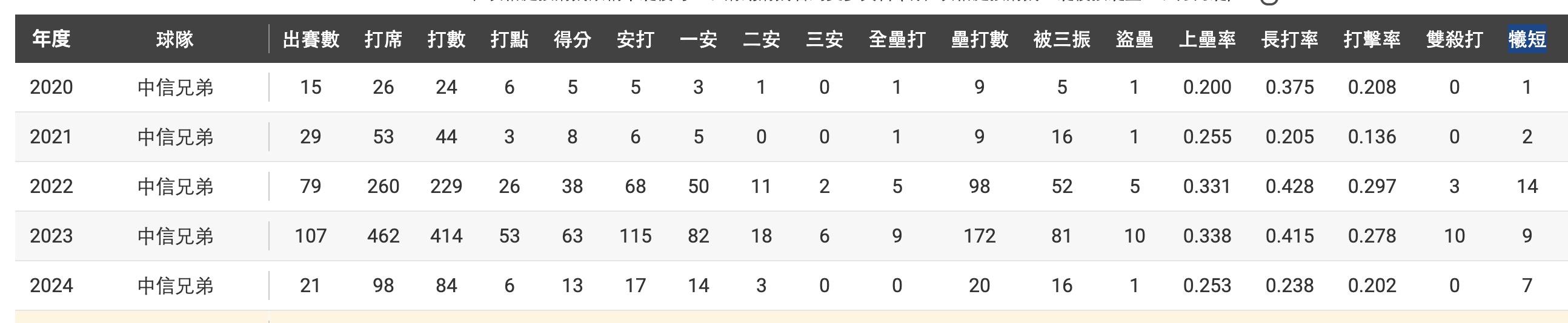 推 rod007: 王威晨今年 .304/.375/.393 BB% 9.2 哪裡不選了 05/03 23:57