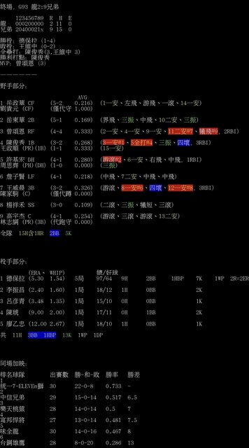 終場,G93 龍2:9兄弟