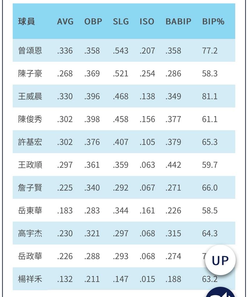 推 ChenTzuHao: 上壘率高長打率普通 05/19 23:23
