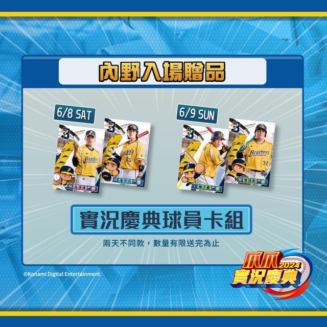 主題日內野進場送「實況慶典球員卡組」兩天不同款喔~