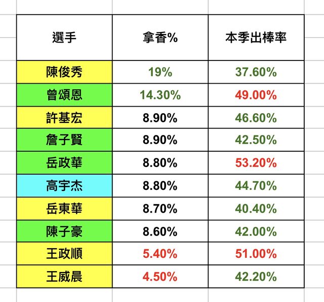 標題[分享] 本隊拿香%(兩好球好球帶未出棒率)