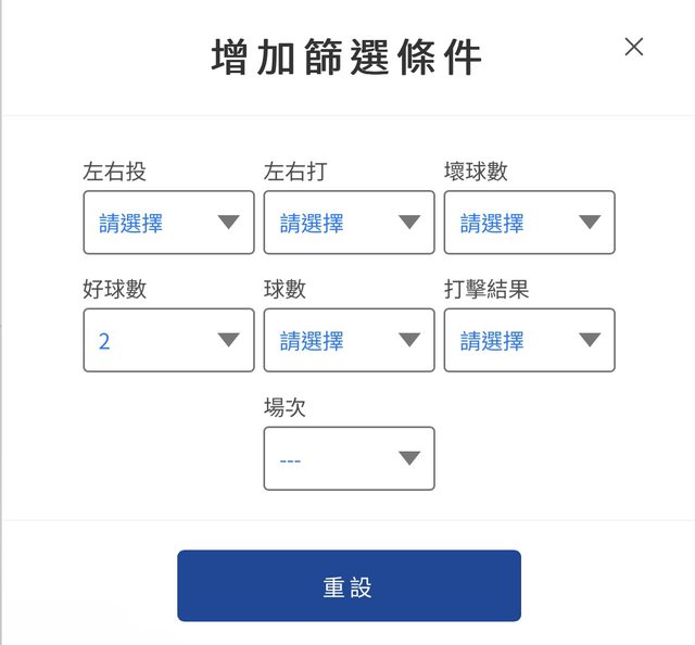 在篩選條件設定成兩好球後,