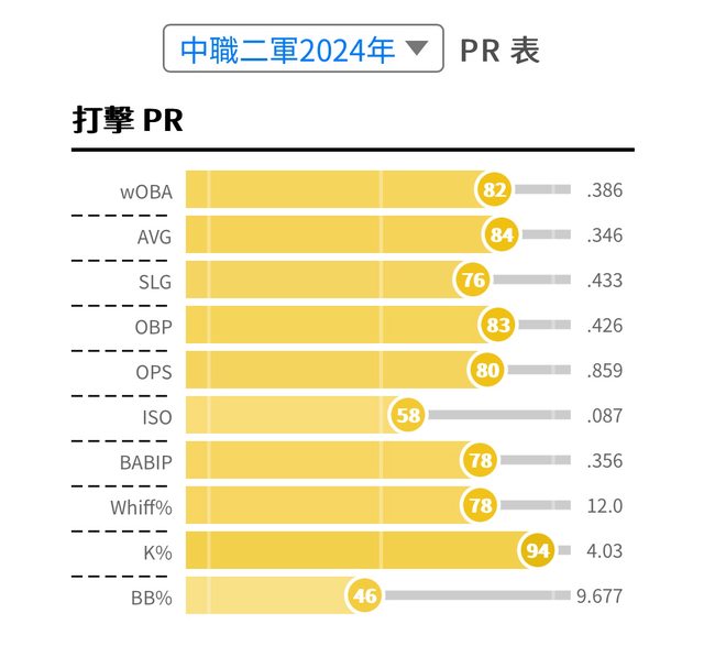 說到張士綸,他今年二軍的成績相當亮眼。 目前三維:.346/.426/.433,ops+ 144 野球革命數據: https://i.imgur.com/nLMSQvW.jpeg