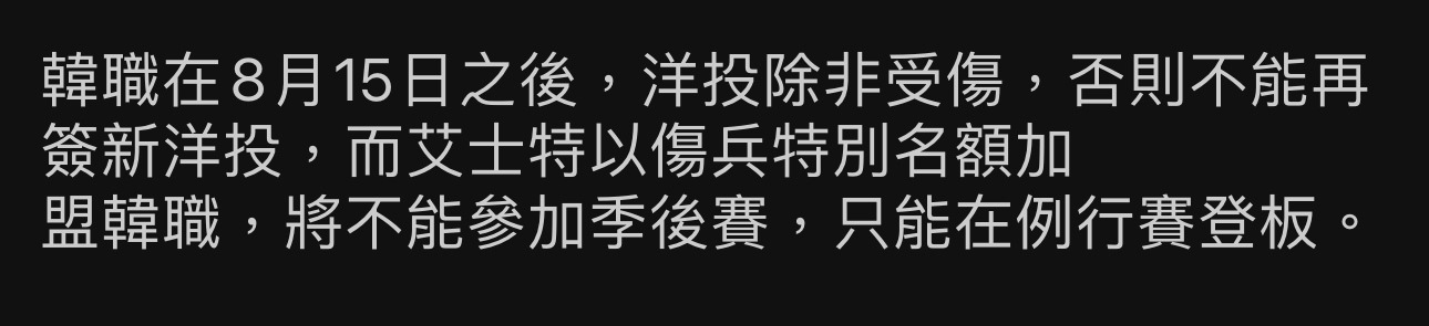 推 Johnyo: 韓職洋將大限不是過了嗎 08/27 16:12