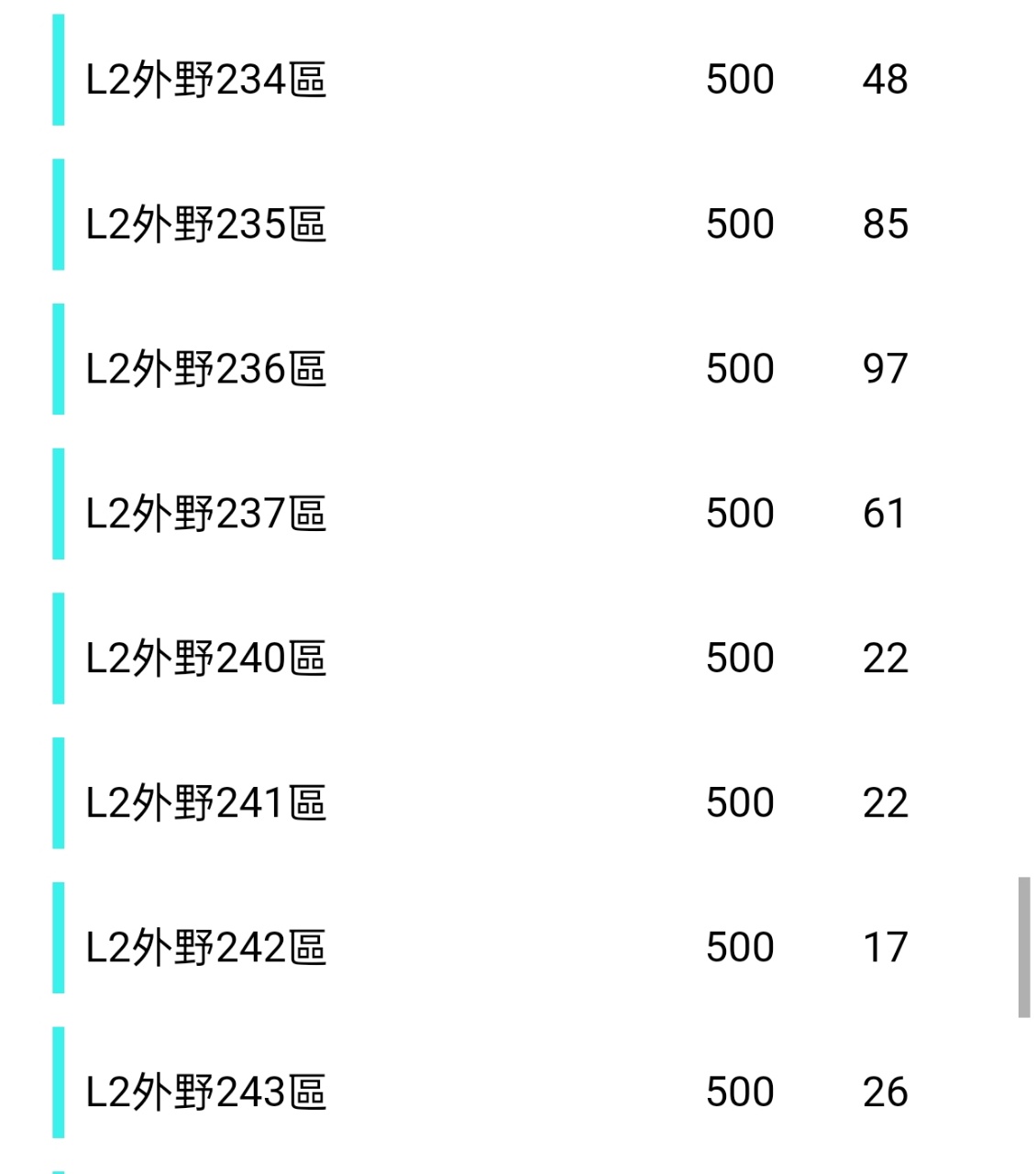 → Marcuslin: 晚上應該各區都會低於100票了 09/13 15:45