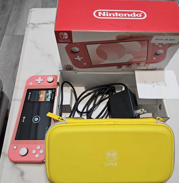 ★【物品名稱】:Switch lite 珊瑚色(含原廠充電線、照片裡的收納包,機體已貼螢幕貼
