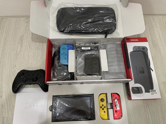 ★【物品名稱】:電力加強版主機、收納包、良值4代 、joycon副廠殼兩組(原廠藍色殼在