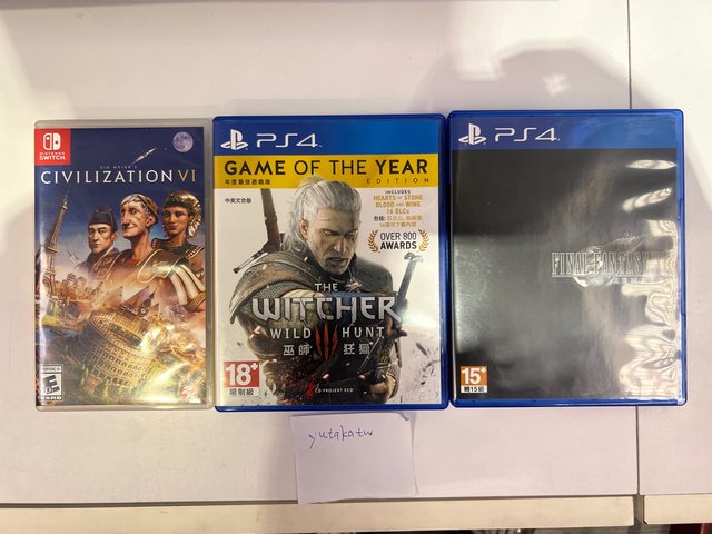 ★【物品名稱】:1.FF7 remake 2.巫師3年度版 3.艾爾登法環(售出) 4.文明帝國6