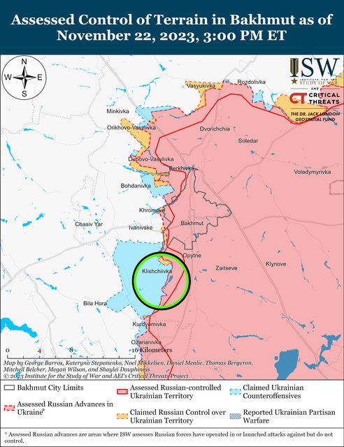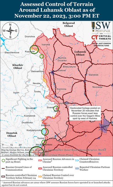 11月22日,俄羅斯軍隊繼續沿著庫皮揚斯克-斯瓦托夫-克雷明納戰線發動地面攻擊,並確認