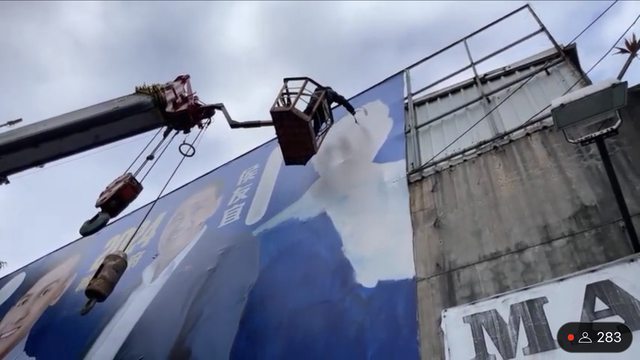: 詢各界意見,研究處理方式。這塊看板的面積大,製作經費不少錢,是否要全面拆除更換