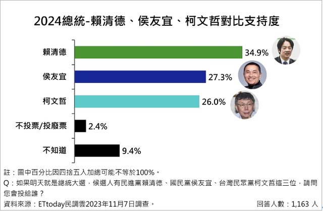 : 為了解現階段台灣民眾對於2024總統選舉的最新看法,《ETtoday民調雲》於11月24日,