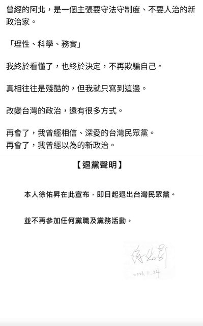 → newrider: 一個人退黨 這麼嗨喔 那藍綠退黨的這麼 36.232.17.74 11/25 11:52