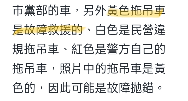 → hwsbetty: 拖吊車是這個顏色嗎? 114.45.50.247 11/25 21:48