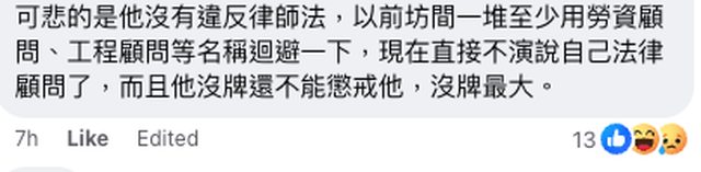現在直接不演說自己法律顧問了,而且他沒牌還不能懲戒他,沒牌最大。