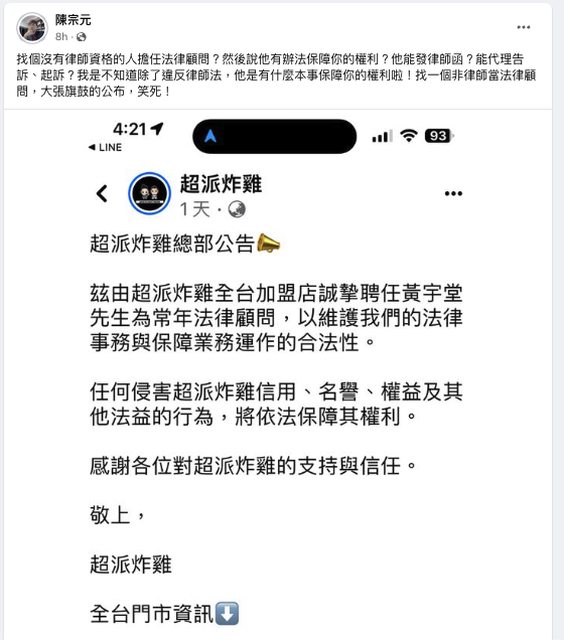 標題[問卦] 超派炸雞找沒律師執照的當法律顧問 (刪文