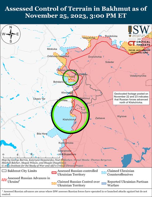 11月25日,烏克蘭軍隊繼續在巴赫穆特附近發動進攻,但沒有推進。烏克蘭總參謀部報告說