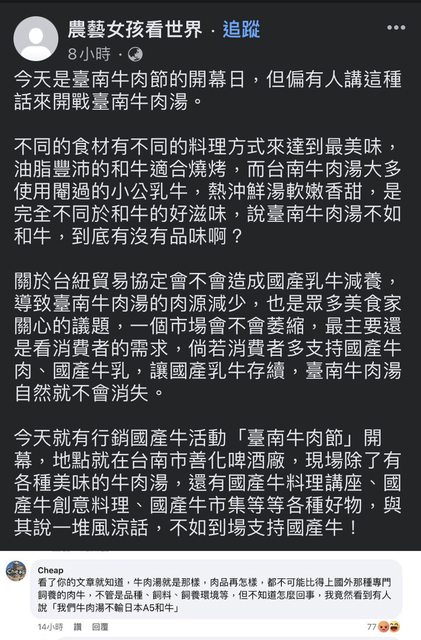 推 Leo4891: 這沒啥好吵的 台南牛肉來源原來是乳牛 36.231.8.208 11/26 17:15