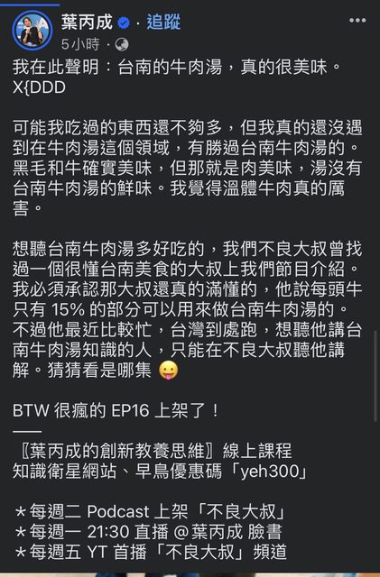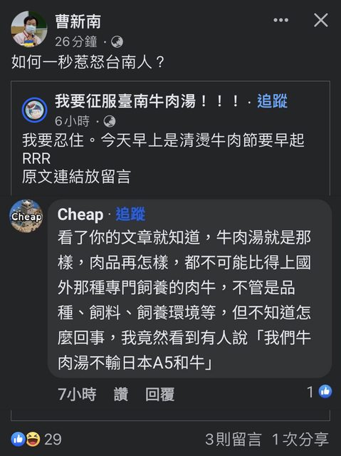 → yuzukeykusa: 樓主連台南牛肉湯都不知道更離譜,翻 1.169.223.143 11/26 17:50
