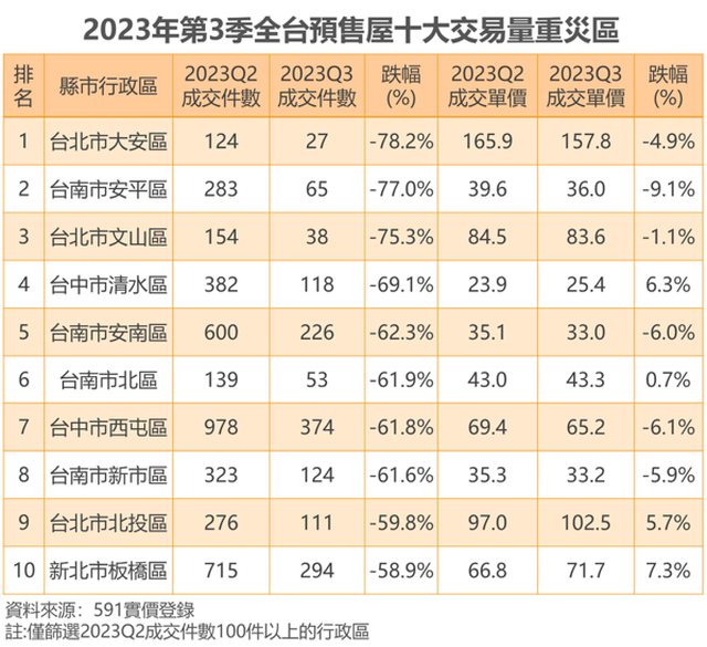 買方第三季追價力道薄弱,而大安區也因新制讓高價住宅交易熄火,奪全台預售屋重災區冠