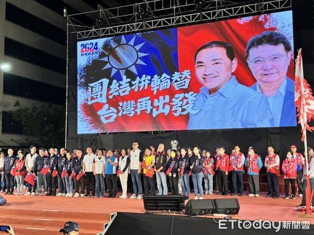 國民黨正副總統參選人侯友宜、趙少康26日出席台南競選總部成立,並舉辦造勢大會,直
