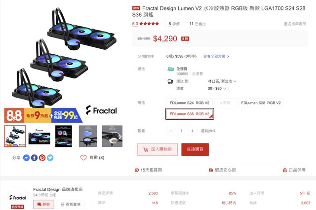 標題[賣/全國/皆可] FD Lumen S36V2 360水冷散熱器