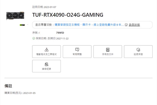 ◎硬體型號:華碩 ASUS TUF Gaming GeForce RTX™ 4090 OC