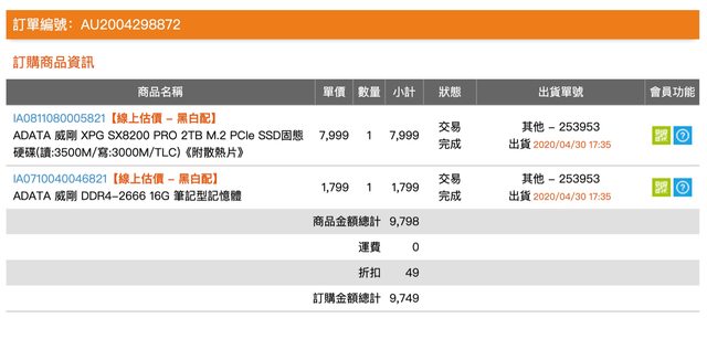 2. 2020/04/30購入,5年保固,在NUC內。