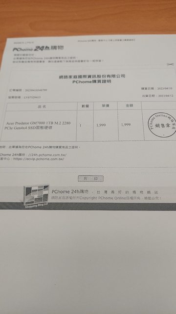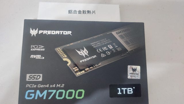 2.Acer Predator GM7000 1TB M.2 2280 PCIe Gen4x4 SSD固態硬碟(含散熱片) (親友贈