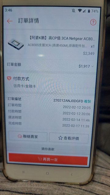 1.Netgear AC800s 3CA 4G分享器(已售)
