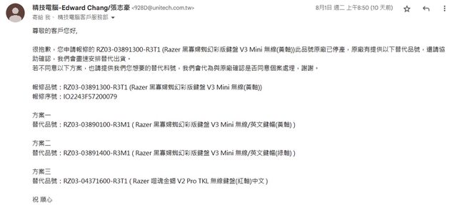原良興購買V3 MINI,E鍵連點問題RMA精技電腦