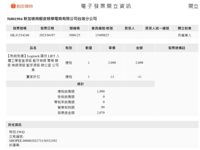 3.2023/04/07於蝦皮購買,保固內,有發票,使用一個月,配件齊全