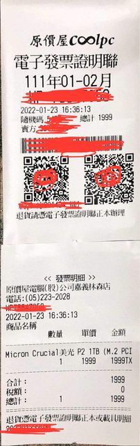 SSD1:美光 P2 1TB (保固至2027/01/23)