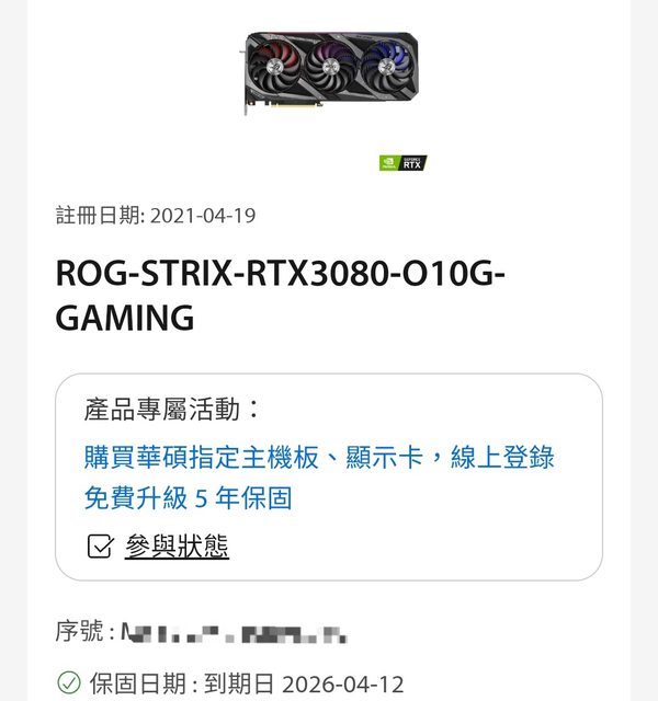 ◎硬體型號:ROG-STRIX-RTX3080-O10G-GAMING