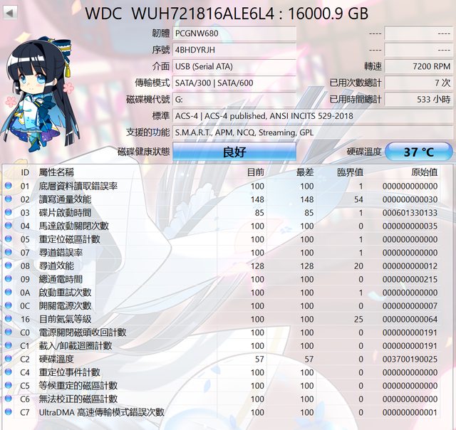 ◎硬體型號: WD HC550 16T硬碟
