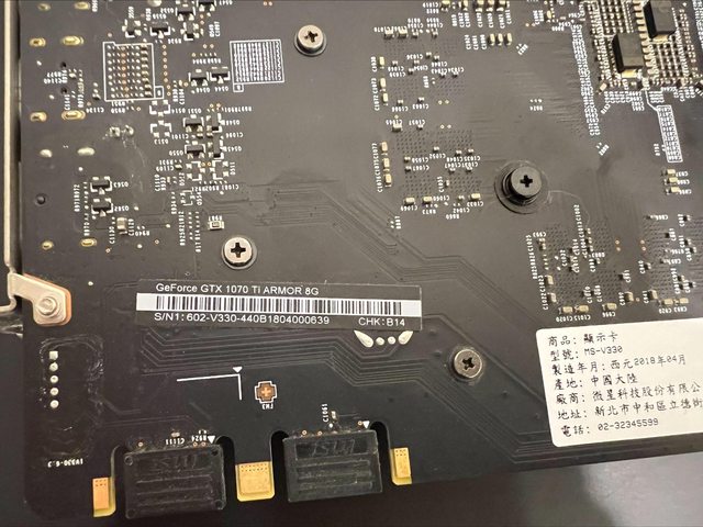 ◎硬體型號: 微星MSI Geforce GTX1070Ti 顯示卡