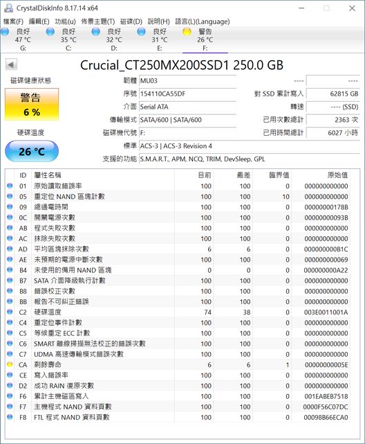 SSD2於2015/12購買,快死掉了(健康度如圖)可以當玩具玩