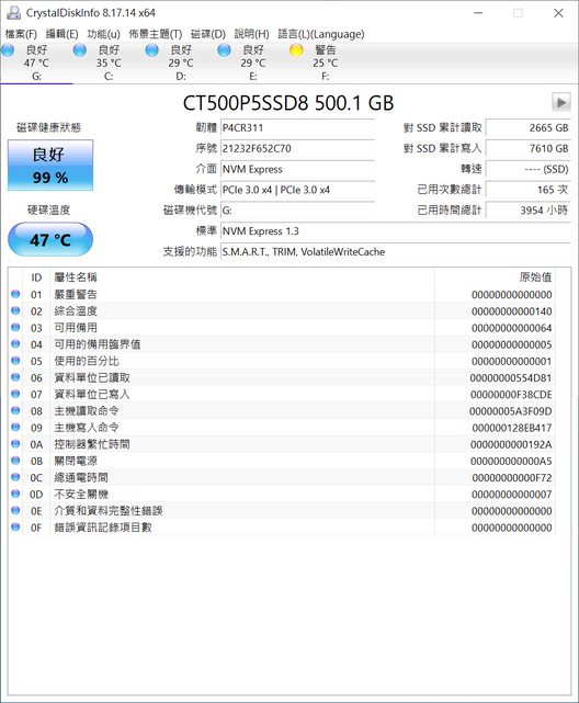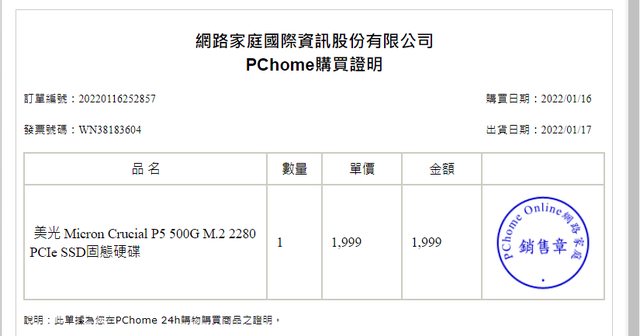 SSD1於2022/01購買,保固中(五年保)
