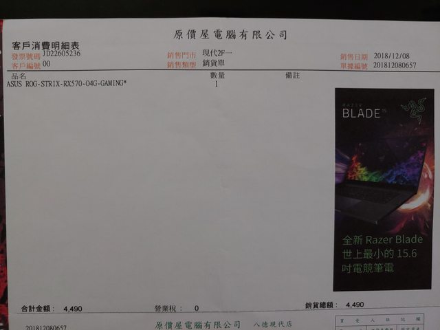 2018/12/08 過保 功能正常 換顯卡故售出 無盒裝