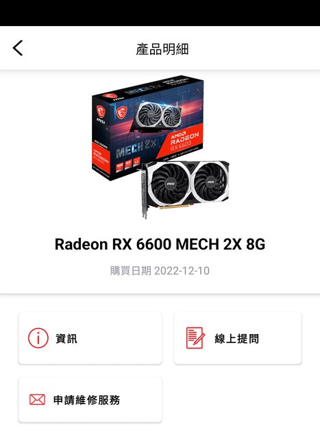 ◎硬體型號: msi Rx 6600 MECH 2x 8G
