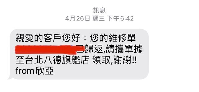今年4月初壞掉走保固送原廠