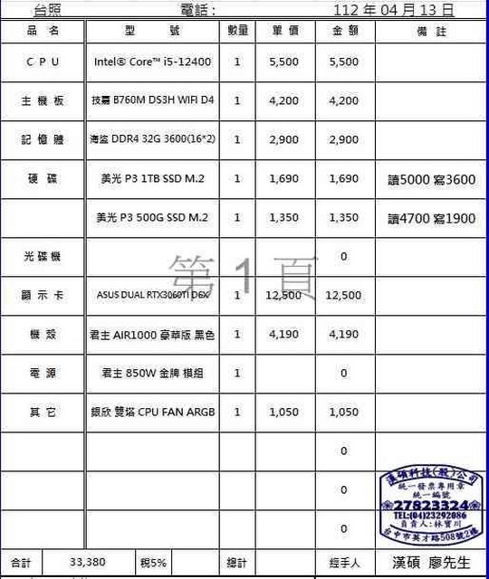 1.商品購買日期皆在2023年4月13號 NOVA二樓組裝電腦時購買