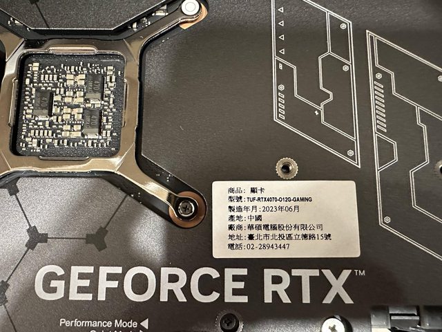 ◎硬體型號:ASUS TUF Gaming GeForce RTX 4070 OC 12GB