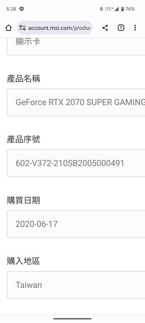 原購入2070S,保內升級,裸卡一張,無個人保、無保