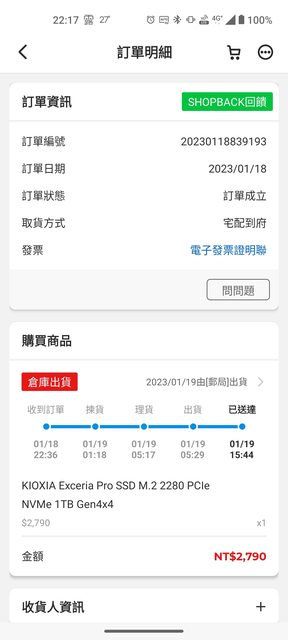 ◎硬體型號:KIOXIA Exceria Pro SSD M.2 2280 PCIe NVMe 1TB Gen4x4(禁止販售未拆封