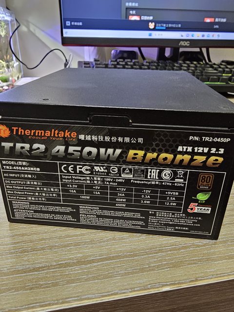 ◎硬體型號: 曜越 TR2 450W 銅牌電源供應器