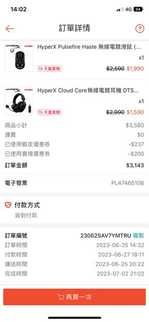 於蝦皮Hyperx官方商城6月底購入 使用約2個多月後來換滑鼠就沒再用了