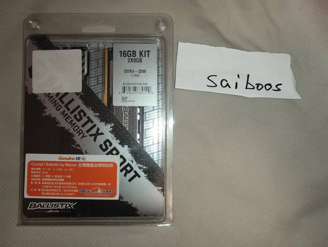 ◎硬體型號: 美光 Ballistix sport lt DDR4-3200 8G*2 灰色