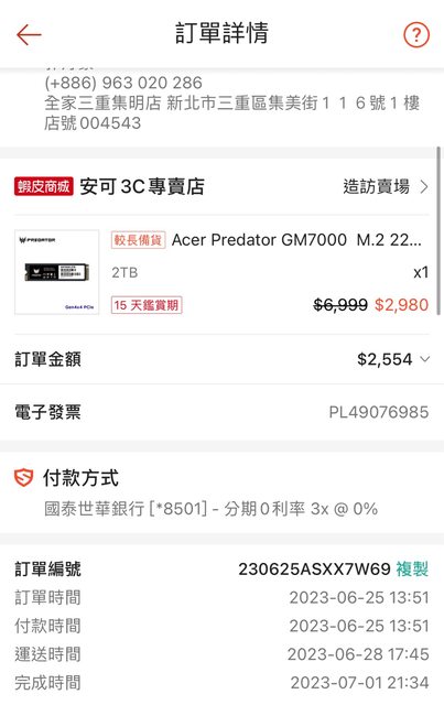 標題[賣/全國/皆可] Acer Predator GM7000 2TB SSD